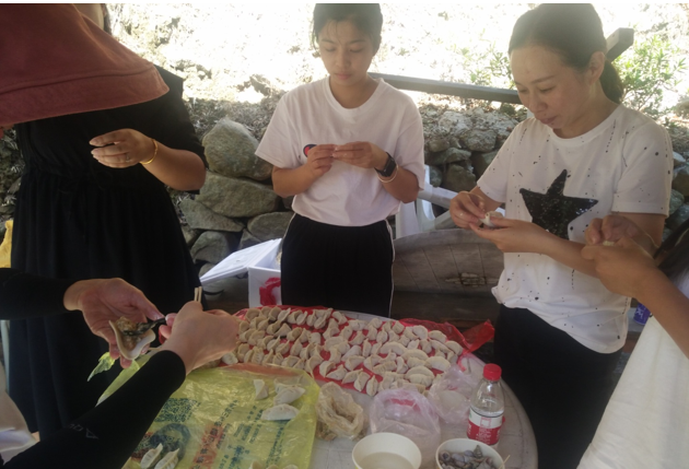 上午達(dá)到目的地后,各小組有條不紊的開始了第一項(xiàng)活動-自主烹飪。大家烹飪的內(nèi)容也是豐富多彩,有燒烤、火鍋、包餃子、還有本地特色豬肉飯。平常不怎么露手的各位可都深藏不露,在公司里研發(fā)中心團(tuán)隊(duì)可是有著燒烤達(dá)人美稱的。今年又新晉一組美食達(dá)人團(tuán)隊(duì)總裁、人力組,因?yàn)樗麄兂晒Υ蚱屏送陰状螣i肉飯失敗案例,這個逆襲非常漂亮!毫不低調(diào)的說風(fēng)馳這個大家庭里有著廚師級別的成員也是高手云集的。經(jīng)過一番忙碌之后,大家心滿意足的享受完一起親手烹飪的美食。