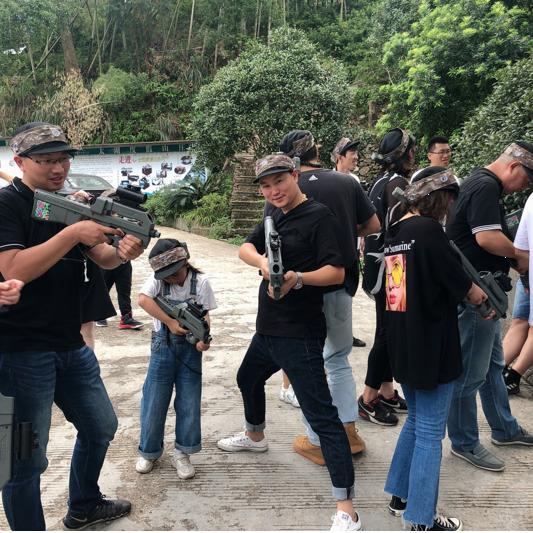 稍作休息后,大家期待的第二項(xiàng)活動-真人CS。在教官的一聲問好中拉開了序幕,風(fēng)馳團(tuán)隊(duì)高聲回答“好,很好,非常好”的口號響徹云霄,振興士氣。教官看了都夸贊我們是有組織,團(tuán)隊(duì)凝聚力很強(qiáng)的團(tuán)隊(duì)。教官先給大家分成了4小組,每組成員為17人,以車輪戰(zhàn)的方式來決定最后勝利的一組,獲勝小組將會獲得價值2800元的獎品。聽到獎品的價值各小組成員兩眼放光,蠢蠢欲動。大家熟悉裝備使用以及了解游戲規(guī)則后,游戲正式開始了。