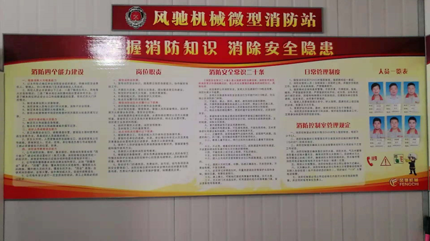 公司內(nèi)部設(shè)立微型消防站,配備專職消防人員,配齊具備的消防器材,定期對(duì)消防專職人員進(jìn)行消防安全知識(shí)、技能演練培訓(xùn),同時(shí)還配了小型消防車,確保萬(wàn)無(wú)一失。