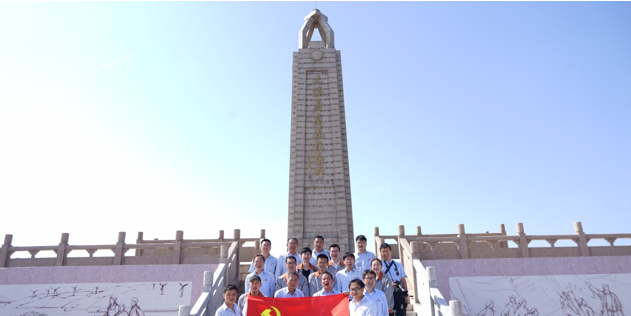 “我志愿加入中國共產黨……隨時準備為黨和人民犧牲一切,永不叛黨?!痹诩o念碑下黨員們面對黨旗,胸帶黨徽,莊嚴地舉起右手,重溫了入黨誓詞,進一步領悟了黨員的責任與使命。