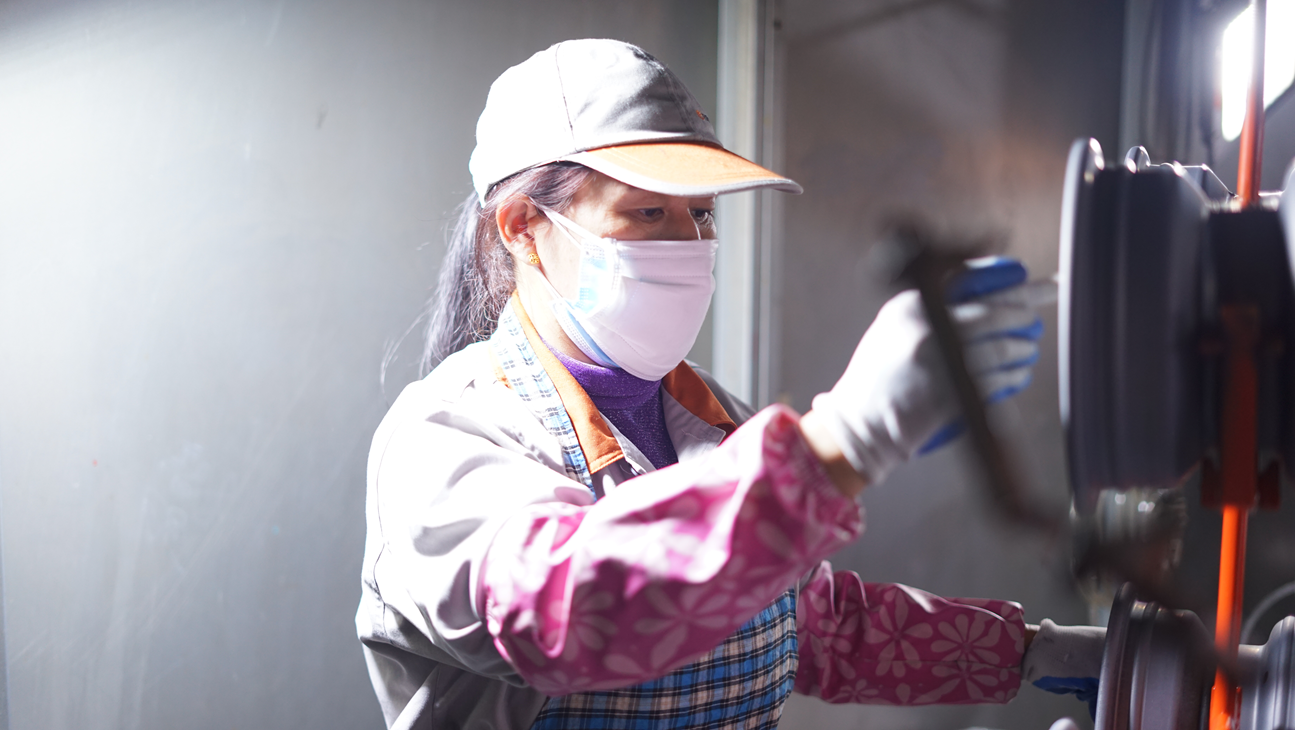 “剛開始進(jìn)入崗位的時候,還是有些不太適應(yīng),只能強迫自己融入團(tuán)隊,不斷提升自己技能,才能做好這個崗位。我在打磨產(chǎn)品的過程當(dāng)中,也慢慢發(fā)現(xiàn)只有精益求精打磨出來的產(chǎn)品才能夠使下一道工序減少不良的產(chǎn)生,也給其他工序帶來一定的幫助,自己也感到很快樂。特別是在工作時幫助他人不斷提高工作質(zhì)量,不斷專研打磨技巧,怎么樣用最快捷最方便的打磨技巧打磨產(chǎn)品,感覺到自己的進(jìn)步,于是慢慢的就喜歡上這份工作?!边@是吳愛芳這份工作的簡單總結(jié)。