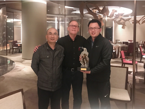 2019年4月26日,風(fēng)馳公司執(zhí)行總裁潘凌杰與營(yíng)銷總監(jiān)江波軍,應(yīng)邀與OTR董事長(zhǎng)Fred Taylor先生于杭州會(huì)晤,Taylor先生親贈(zèng)水晶紀(jì)念雕,感謝風(fēng)馳公司二十年來的一路陪伴和支持,風(fēng)馳的日新月異離不開OTR的幫助,OTR的蒸蒸日上也離不開風(fēng)馳的支持。